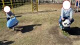 膝を曲げてマットの上でじゃがいもゴロゴロ、手足を伸ばしてさつまいもゴロゴロ。