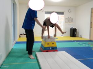 跳び箱3段を縦向きに置いて挑戦です!横向きより難易度アップです🔥