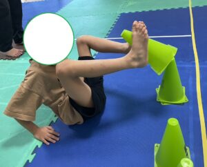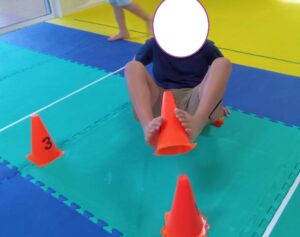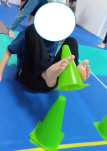 コーン積み重ね バランス感覚・足の指先の力・空間認知