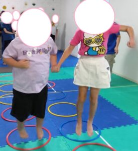 スキップの前段階として最初は手をつないでジャンプをして練習をしました😊