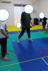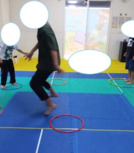鬼ごっこでフープの中に逃げるとタッチされません!