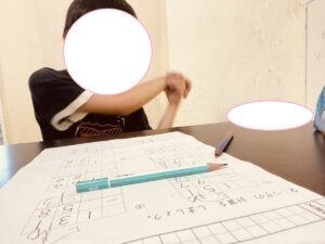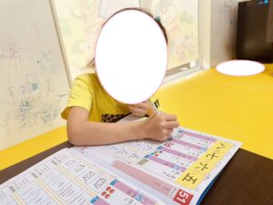午後は、宿題を集中して行うお友達、自分でなるべく考えて答えを出します。