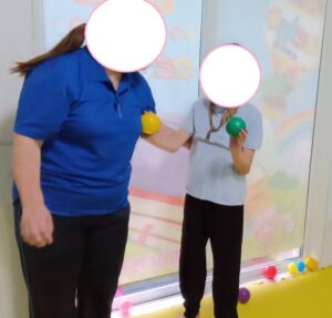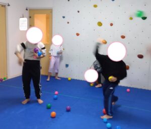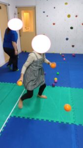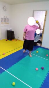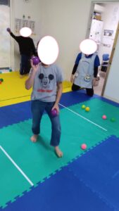 みなさんよく聞き、たくさんある色の中から見つけて投げることができました🥎💨