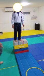 忍者で跳び箱ジャンプ 高所感覚・バランス力・空間感覚・身体コントロール