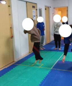 床に貼ってある四角のテープから出ないように回転しながらジャンプ🔥