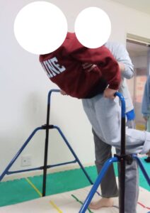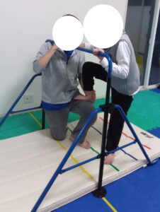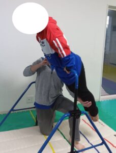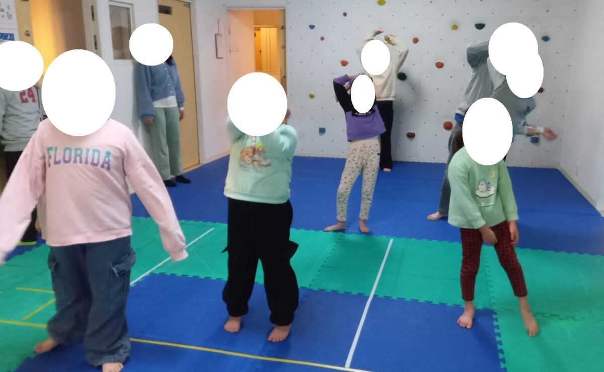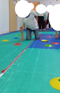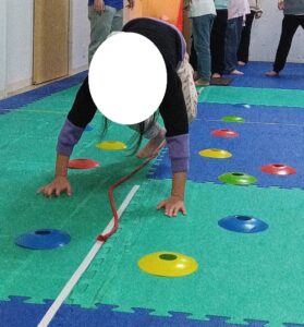 片足を上げてクマ歩きをしながら、指定された色のカップにタッチしていきます🐻