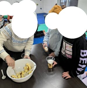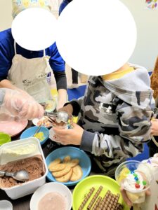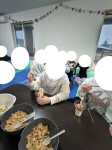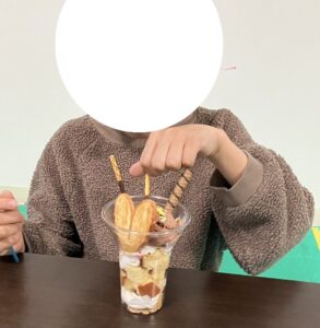 おやつの時間では、あまーいパフェ作りに挑戦💛