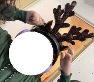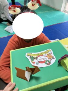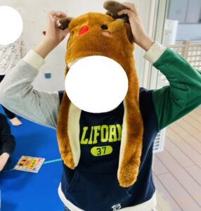 子どもたちもクリスマスらしい被り物やカチューシャをつけてウキウキです😊🎵