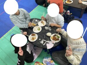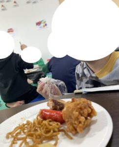 お昼は、子どもたちが大好きなおかずてんこ盛りのオードブルをほおばりました🍗🍗🍗😋