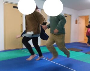 二人で大繩跳び 跳躍力・リズム力・バランス力