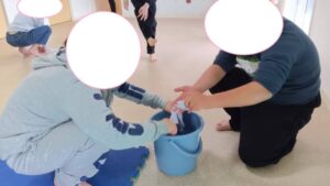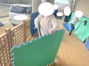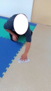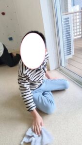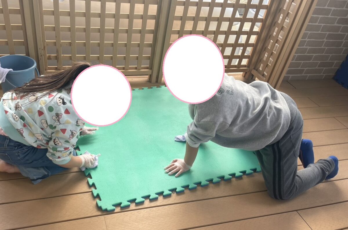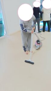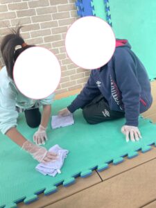 子供たちみんなで床半分ピカピカに雑巾がけや掃き掃除をします(^^)/