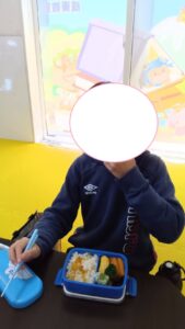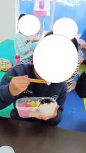 雑巾絞りや雑巾がけもみんなの手で一生懸命頑張れました!!大掃除の後のお弁当は美味しいね♬