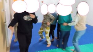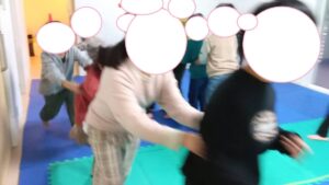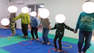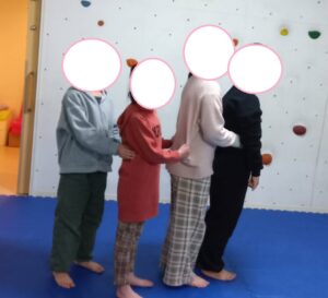 隣の友達と手をつないで息を合わせてジャンプ出来ました(^^)/
