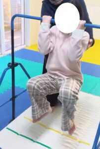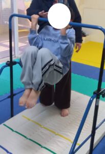 肘と膝を曲げてぶら下がります!1,2,3秒・・・