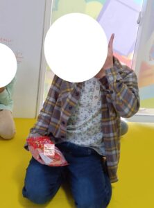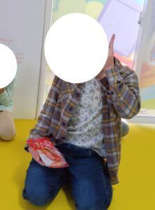 みんな、ゲットできた菓子パンをニコニコで見せてくれました♪