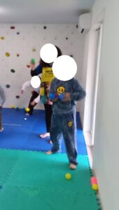 たくさん拾って投げる友達や一つずつ素早く投げる友達など白熱した戦いでした!(^^)!