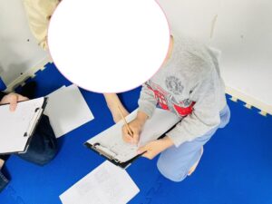 力加減や角度、マーカーの上下の向きなど、みんなでアドバイスや提案をしながら